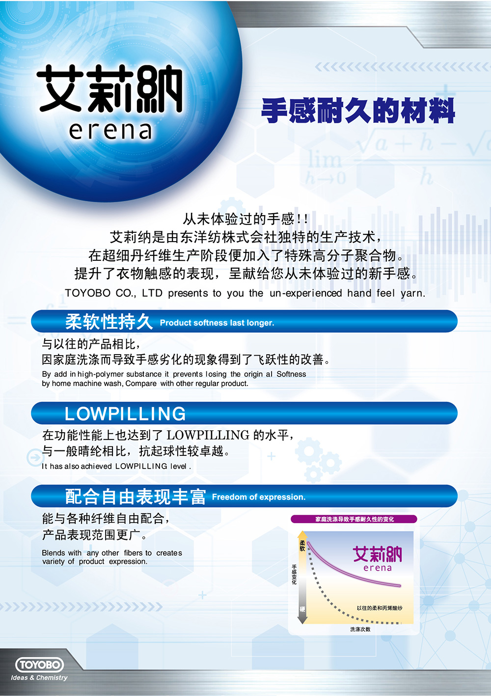 艾莉納是由東洋紡株式會社獨特的生產(chǎn)技術(shù),在超細旦纖維生產(chǎn)階段便加入了特殊高分子聚合物,與一般腈綸相比,抗起球性較卓越。